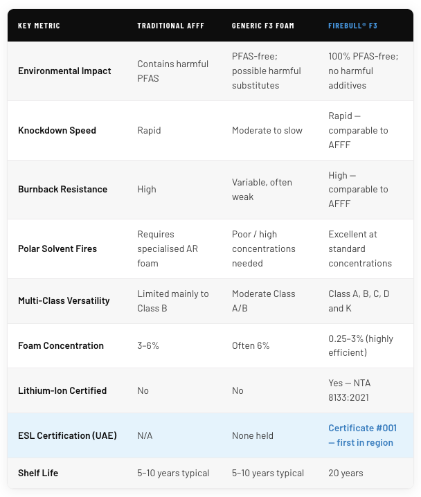 8. FireBull® F3 – The UAE’s Only ESL-Certified Fluorine-Free Foam
