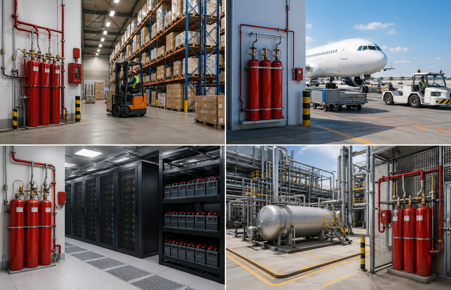 Warehouses and Logistics Hubs. Jebel Ali, Dubai Industrial City, KIZAD and DWC logistics corridors handle lithium battery shipments at scale. A fire in a lithium-dense warehouse with inadequate suppression creates catastrophic financial and infrastructure consequences.